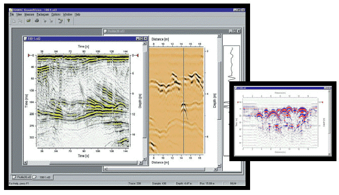 GPR provides very rapid, high resolution mapping of the shallow concrete subsurface. Results are displayed in 2D or can undergo computerized post processing for 3D information.